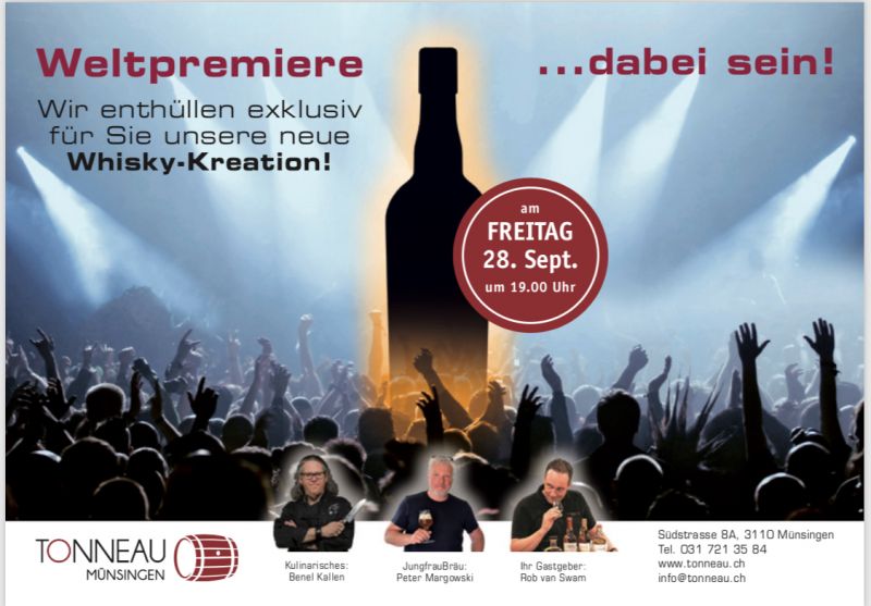 Zufriedene Gesichter beim Team und allen Gästen am Tonneau-Fescht 2018, so wie viel Vorfreude auf diesen exklusiven Small Batch Whisky von Arran – eine Hochzeit dreier Fässer: ein First Fill Sherry Hogshead, ein First Fill Bourbon Barrel und ein Bourbon Barrel mit getorftem Whisky 42ppm. Abgefüllt mit stolze 50% Vol. Alk.